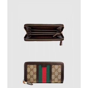 라니아 캔버스 GG 원단 지퍼형 가죽 지갑 353651 > 지갑